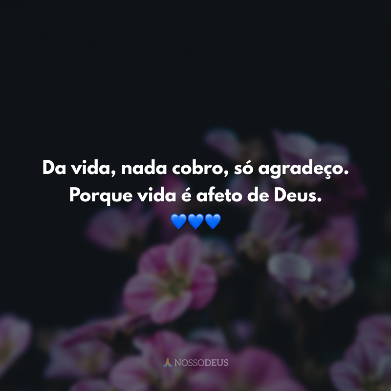 Da vida, nada cobro, só agradeço. Porque vida é afeto de Deus. 💙💙💙