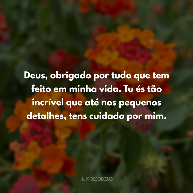 Deus, obrigado por tudo que tem feito em minha vida. Tu és tão incrível que até nos pequenos detalhes, tens cuidado por mim.