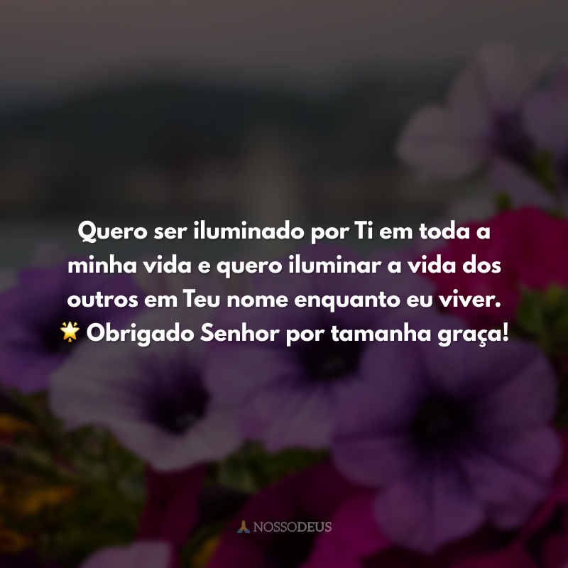 Quero ser iluminado por Ti em toda a minha vida e quero iluminar a vida dos outros em Teu nome enquanto eu viver. 🌟 Obrigado Senhor por tamanha graça!