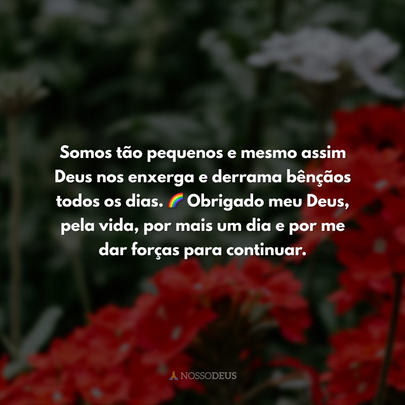 Somos tão pequenos e mesmo assim Deus nos enxerga e derrama bênçãos todos os dias. 🌈 Obrigado meu Deus, pela vida, por mais um dia e por me dar forças para continuar.