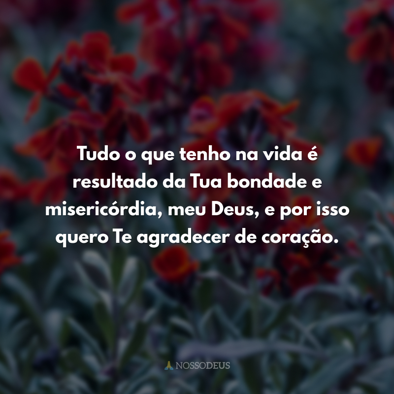 Tudo o que tenho na vida é resultado da Tua bondade e misericórdia, meu Deus, e por isso quero Te agradecer de coração.