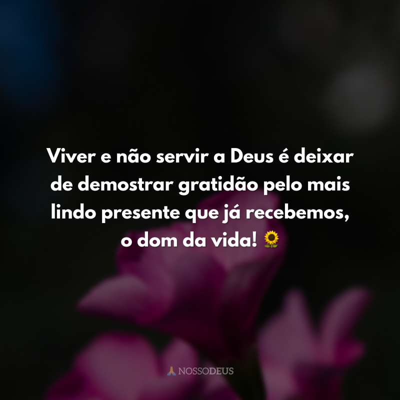 Viver e não servir a Deus é deixar de demostrar gratidão pelo mais lindo presente que já recebemos, o dom da vida! 🌻