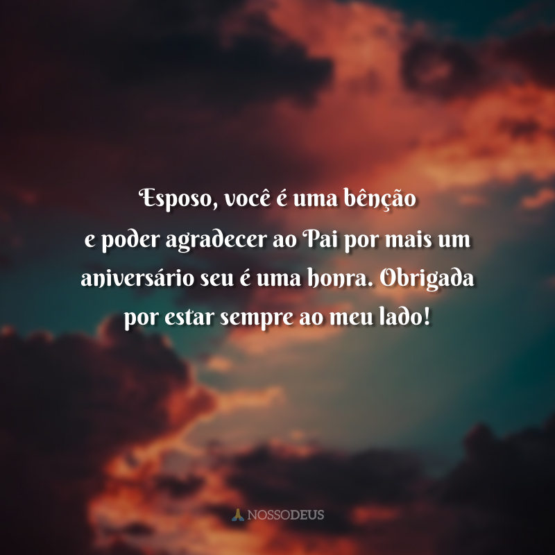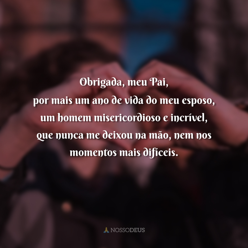 Senhor, você já me deu o maior presente divino: meu esposo. Hoje, quero agradecer pela vida dele e pela oportunidade de nossos caminhos seguirem juntos ao Seu lado.