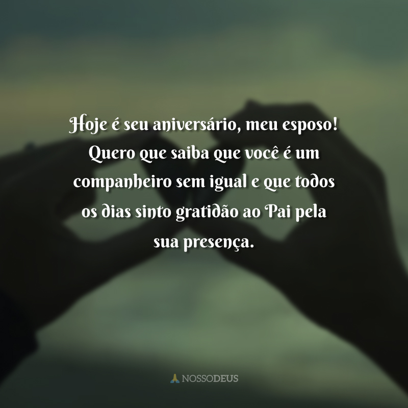 Hoje é seu aniversário, meu esposo! Quero que saiba que você é um companheiro sem igual e que todos os dias sinto gratidão ao Pai pela sua presença.