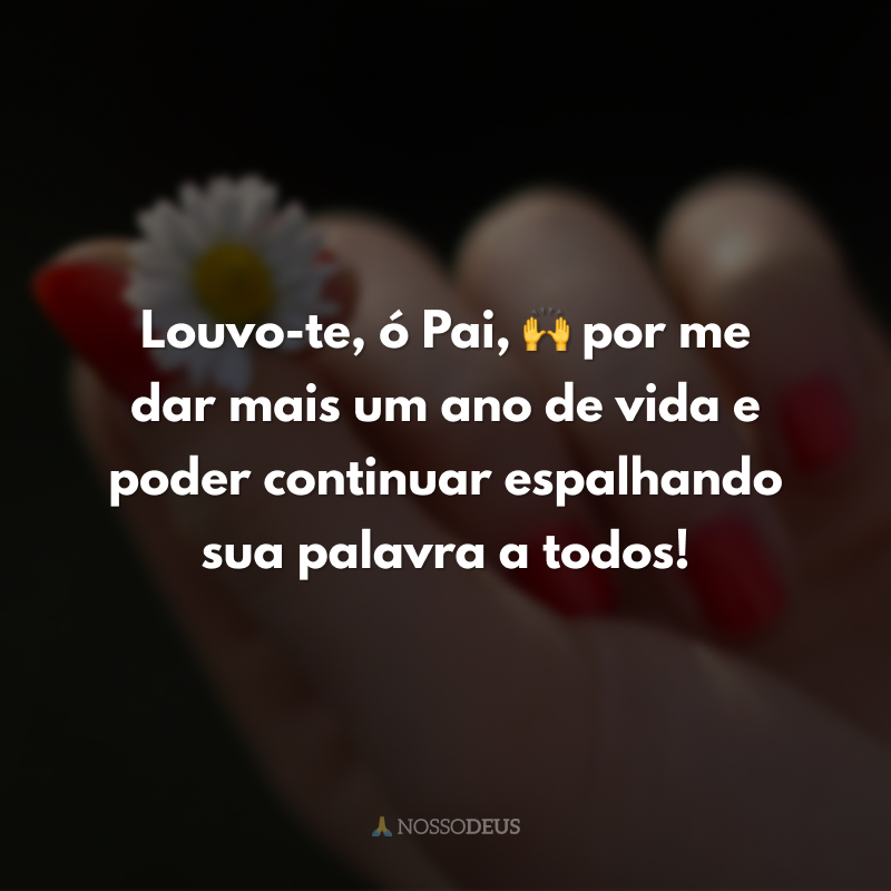 Louvo-te, ó Pai, 🙌 por me dar mais um ano de vida e poder continuar espalhando sua palavra a todos!