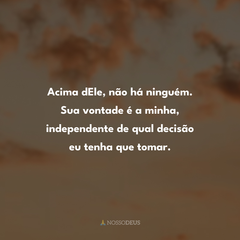 Acima dEle, não há ninguém. Sua vontade é a minha, independente de qual decisão eu tenha que tomar.