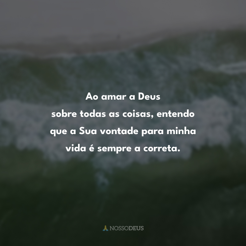Ao amar a Deus sobre todas as coisas, entendo que a Sua vontade para minha vida é sempre a correta.
