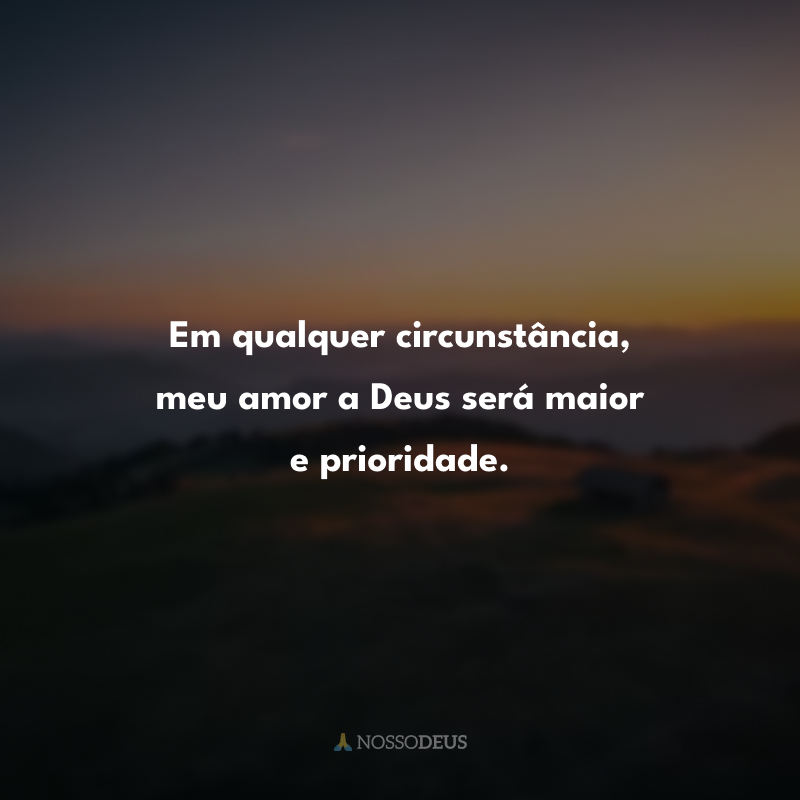 Em qualquer circunstância, meu amor a Deus será maior e prioridade.
