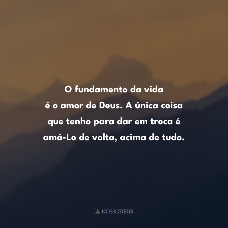 O fundamento da vida é o amor de Deus. A única coisa que tenho para dar em troca é amá-Lo de volta, acima de tudo.