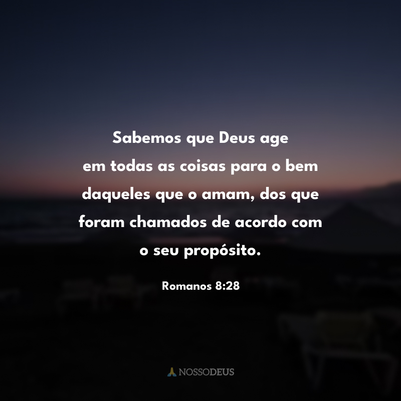 Sabemos que Deus age em todas as coisas para o bem daqueles que o amam, dos que foram chamados de acordo com o seu propósito.