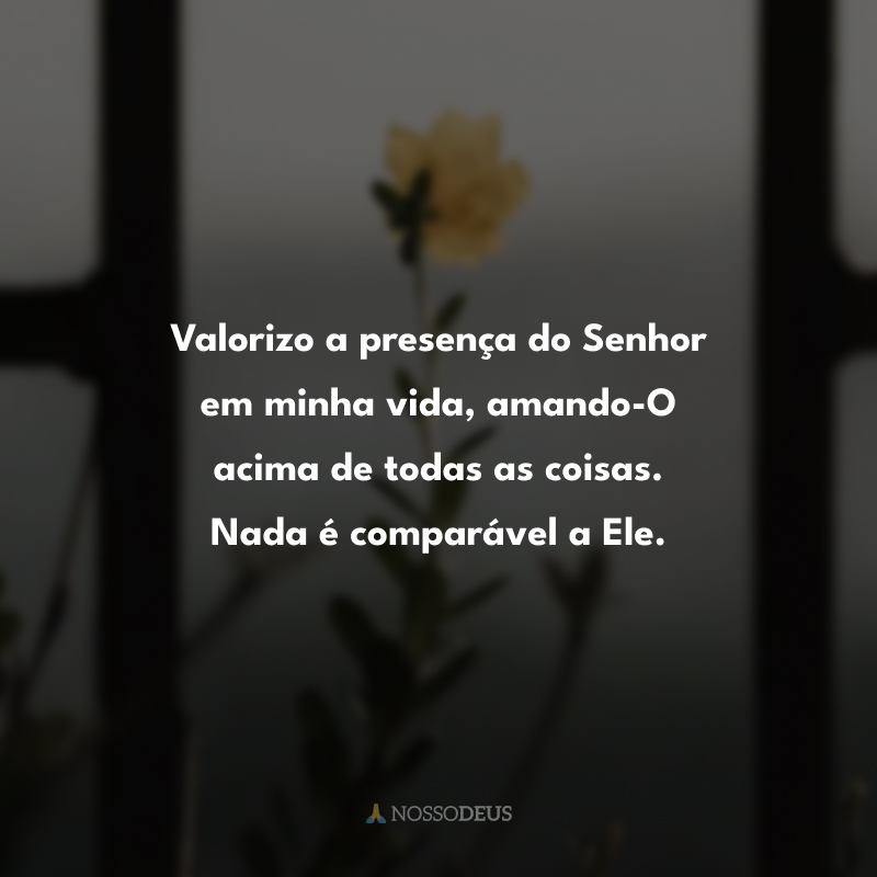 Valorizo a presença do Senhor em minha vida, amando-O acima de todas as coisas. Nada é comparável a Ele.
