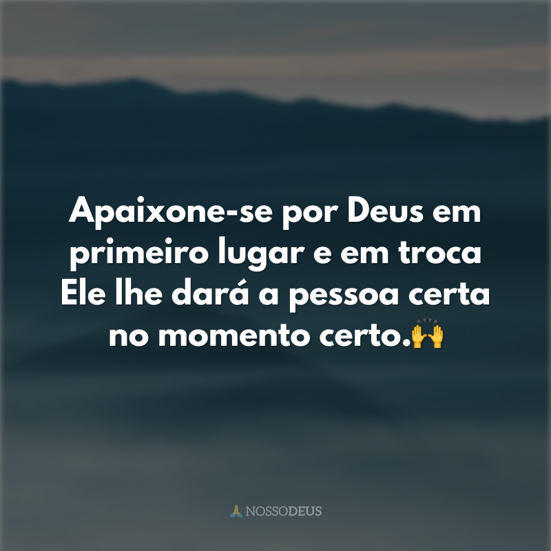 Apaixone-se por Deus em primeiro lugar e em troca Ele lhe dará a pessoa certa no momento certo. 🙌