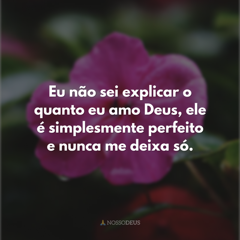 Eu não sei explicar o quanto eu amo Deus, ele é simplesmente perfeito e nunca me deixa só.