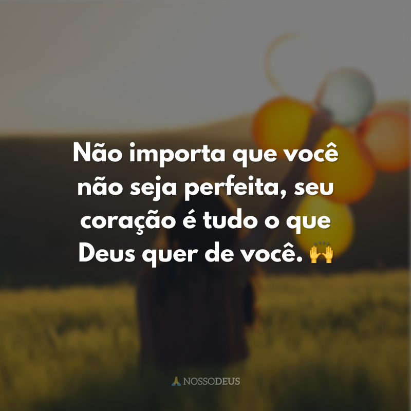 Não importa que você não seja perfeita, seu coração é tudo o que Deus quer de você. 🙌