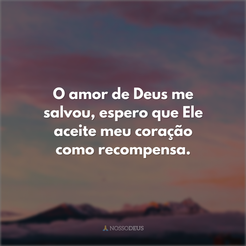 O amor de Deus me salvou, espero que Ele aceite meu coração como recompensa.