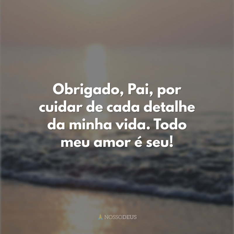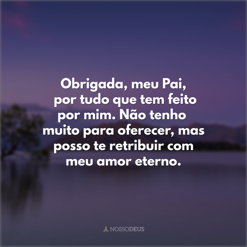 Obrigada, meu Pai, por tudo que tem feito por mim. Não tenho muito para oferecer, mas posso te retribuir com meu amor eterno.