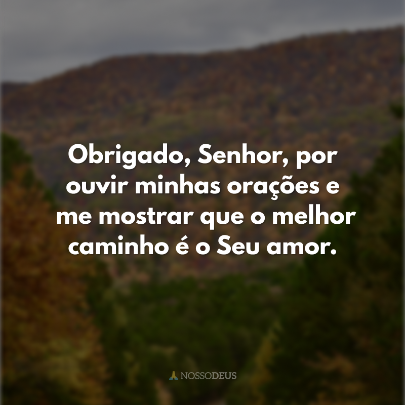 Obrigado, Senhor, por ouvir minhas orações e me mostrar que o melhor caminho é o Seu amor.