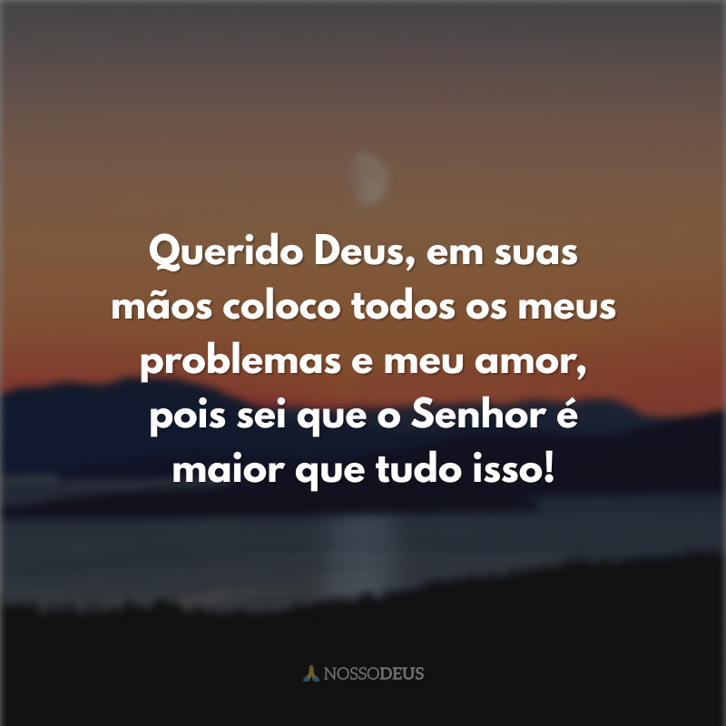 Querido Deus, em suas mãos coloco todos os meus problemas e meu amor, pois sei que o Senhor é maior que tudo isso!
