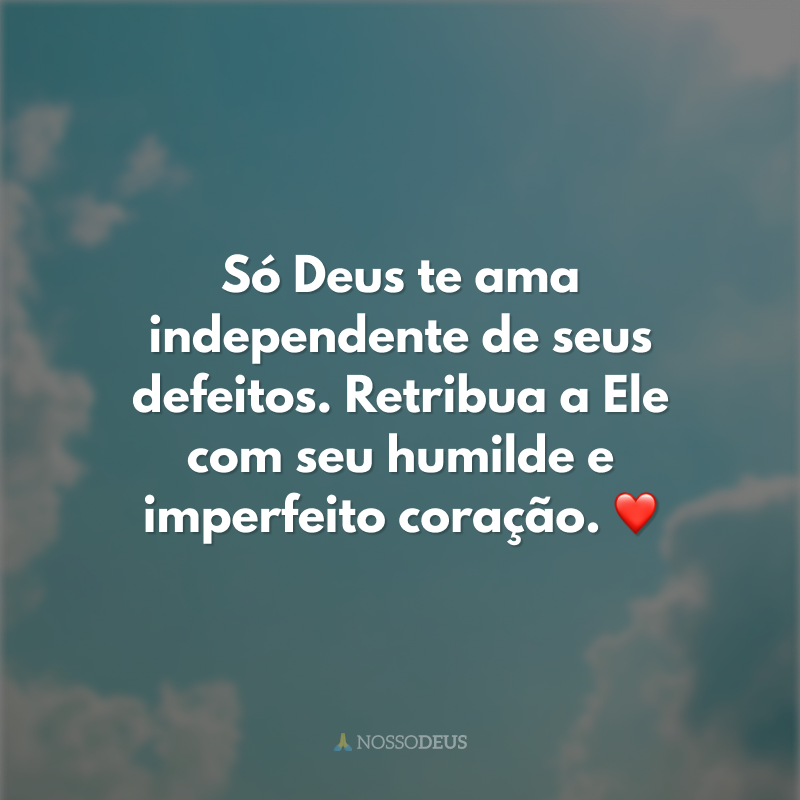 Só Deus te ama independente de seus defeitos. Retribua a Ele com seu humilde e imperfeito coração. ❤