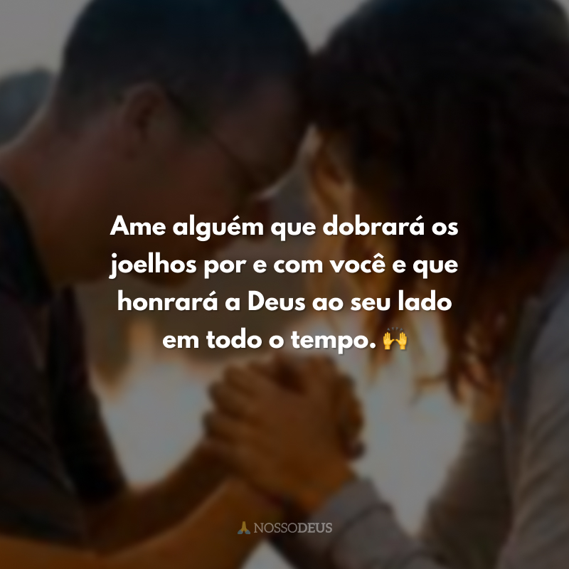 Ame alguém que dobrará os joelhos por e com você e que honrará a Deus ao seu lado em todo o tempo. 🙌