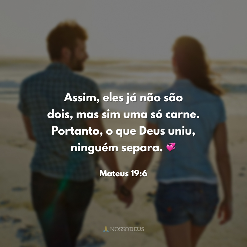 Assim, eles já não são dois, mas sim uma só carne. Portanto, o que Deus uniu, ninguém separa. 💞