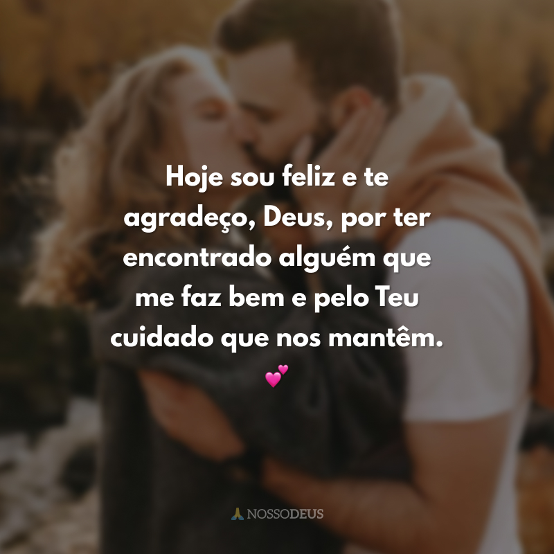 Hoje sou feliz e te agradeço, Deus, por ter encontrado alguém que me faz bem e pelo Teu cuidado que nos mantêm. 💕