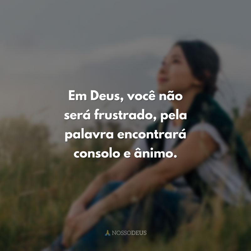 Em Deus, você não será frustrado, pela palavra encontrará consolo e ânimo.