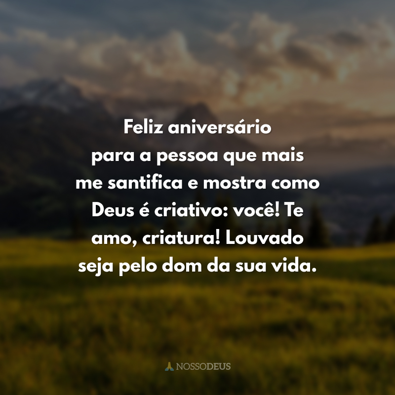 Feliz aniversário para a pessoa que mais me santifica e mostra como Deus é criativo: você! Te amo, criatura! Louvado seja pelo dom da sua vida.