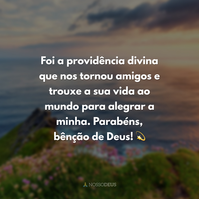Foi a providência divina que nos tornou amigos e trouxe a sua vida ao mundo para alegrar a minha. Parabéns, bênção de Deus! 💫