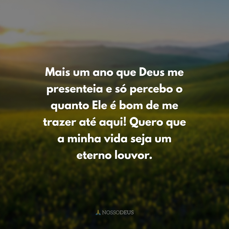 Mais um ano que Deus me presenteia e só percebo o quanto Ele é bom de me trazer até aqui! Quero que a minha vida seja um eterno louvor.
