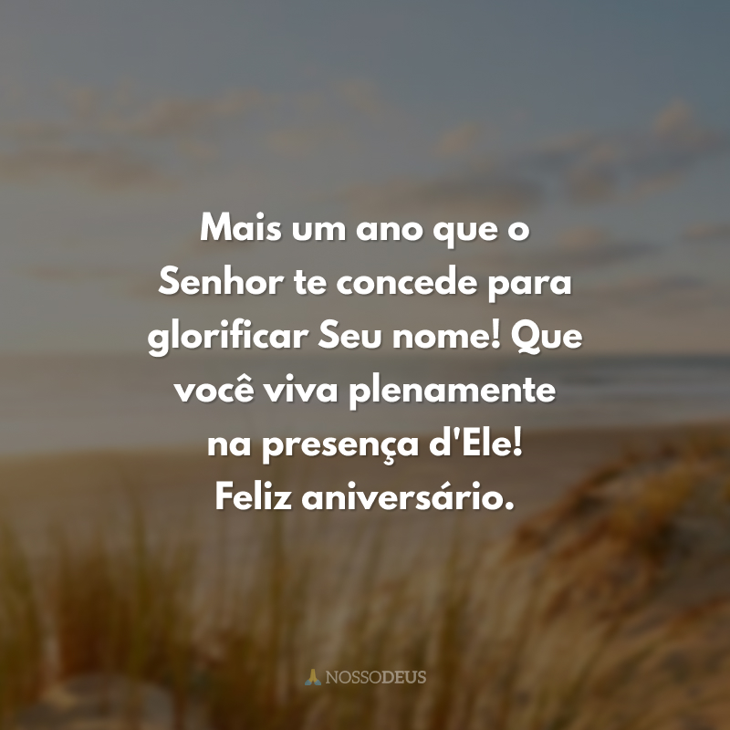 Mais um ano que o Senhor te concede para glorificar Seu nome! Que você viva plenamente na presença d'Ele! Feliz aniversário.