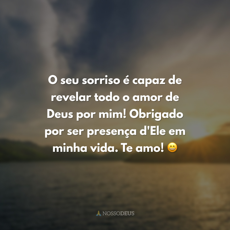 O seu sorriso é capaz de revelar todo o amor de Deus por mim! Obrigado por ser presença d'Ele em minha vida. Te amo! 😄
