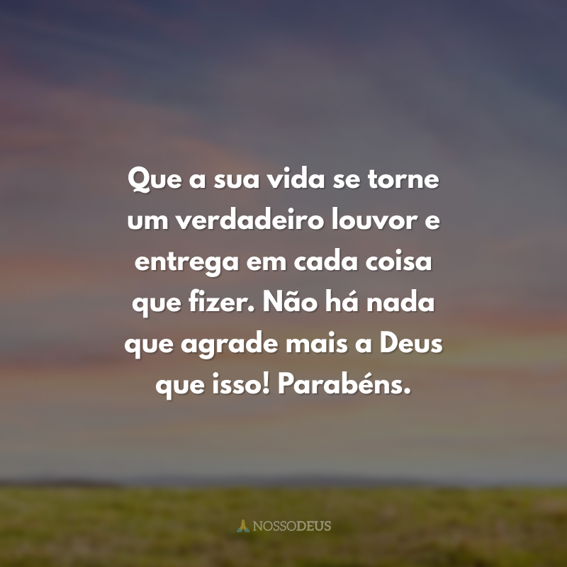 Que a sua vida se torne um verdadeiro louvor e entrega em cada coisa que fizer. Não há nada que agrade mais a Deus que isso! Parabéns.