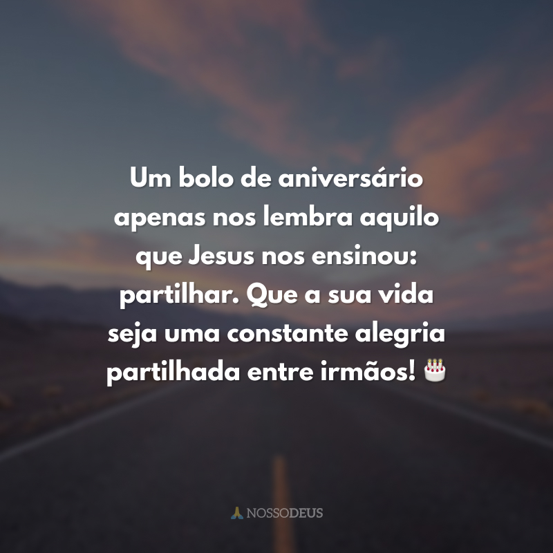 Um bolo de aniversário apenas nos lembra aquilo que Jesus nos ensinou: partilhar. Que a sua vida seja uma constante alegria partilhada entre irmãos! 🎂