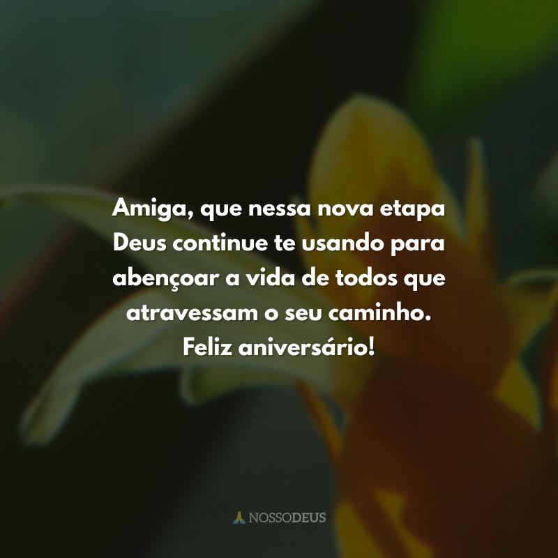 Amiga, que nessa nova etapa Deus continue te usando para abençoar a vida de todos que atravessam o seu caminho. Feliz aniversário!