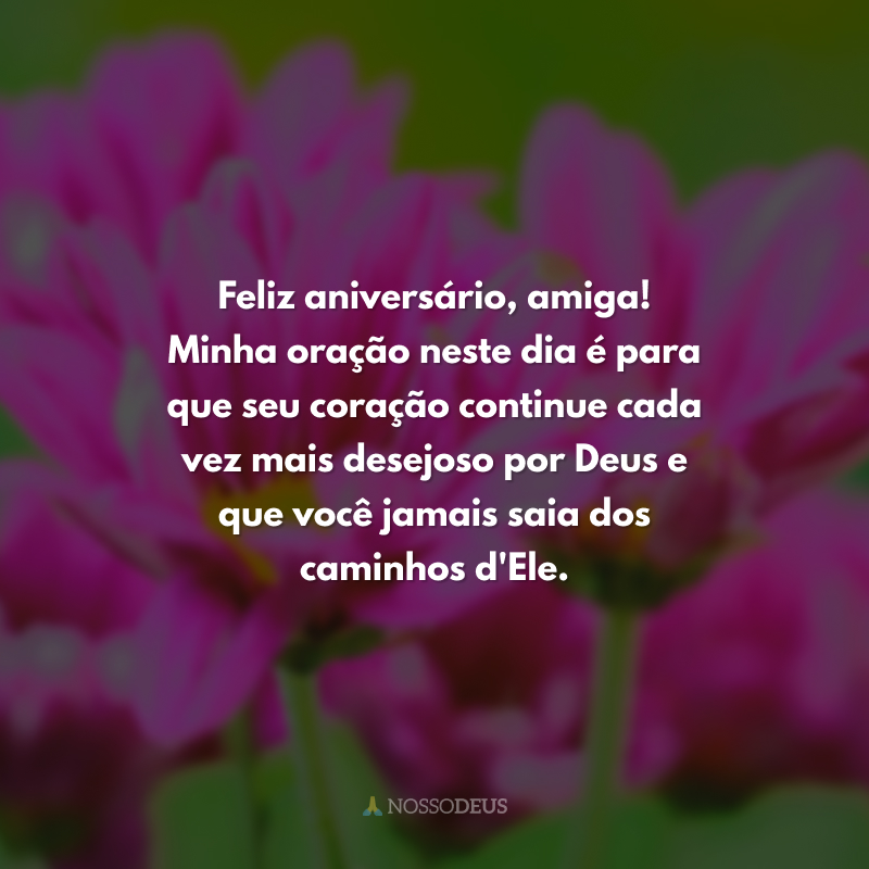 Feliz aniversário, amiga! Minha oração neste dia é para que seu coração continue cada vez mais desejoso por Deus e que você jamais saia dos caminhos d'Ele.