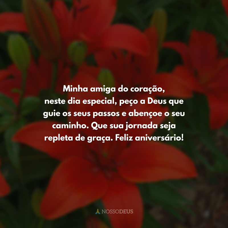 Minha amiga do coração, neste dia especial, peço a Deus que guie os seus passos e abençoe o seu caminho. Que sua jornada seja repleta de graça. Feliz aniversário!
