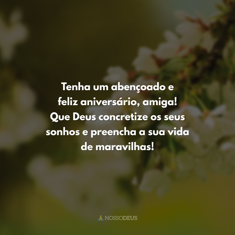 Tenha um abençoado e feliz aniversário, amiga! Que Deus concretize os seus sonhos e preencha a sua vida de maravilhas!