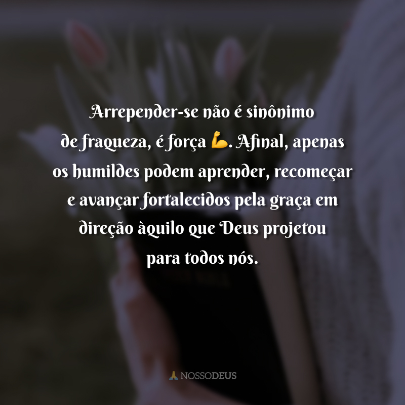 Arrepender-se não é sinônimo de fraqueza, é força 💪. Afinal, apenas os humildes podem aprender, recomeçar e avançar fortalecidos pela graça em direção àquilo que Deus projetou para todos nós.