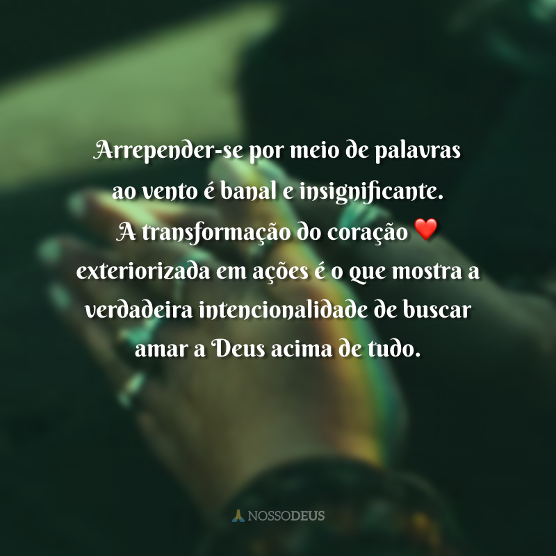 Arrepender-se por meio de palavras ao vento é banal e insignificante. A transformação do coração ❤️ exteriorizada em ações é o que mostra a verdadeira intencionalidade de buscar amar a Deus acima de tudo.