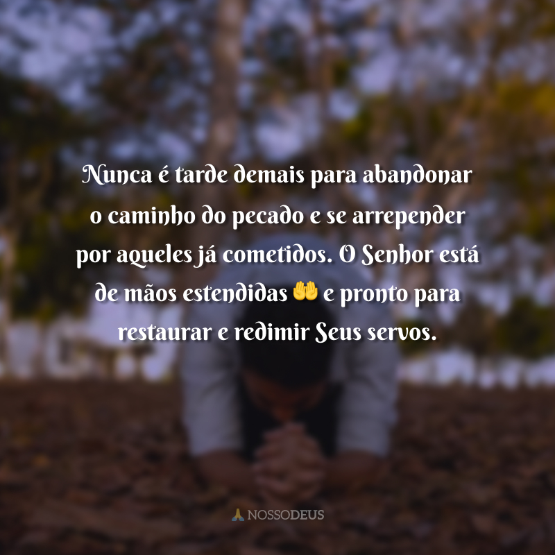 Nunca é tarde demais para abandonar o caminho do pecado e se arrepender por aqueles já cometidos. O Senhor está de mãos estendidas 🤲 e pronto para restaurar e redimir Seus servos.