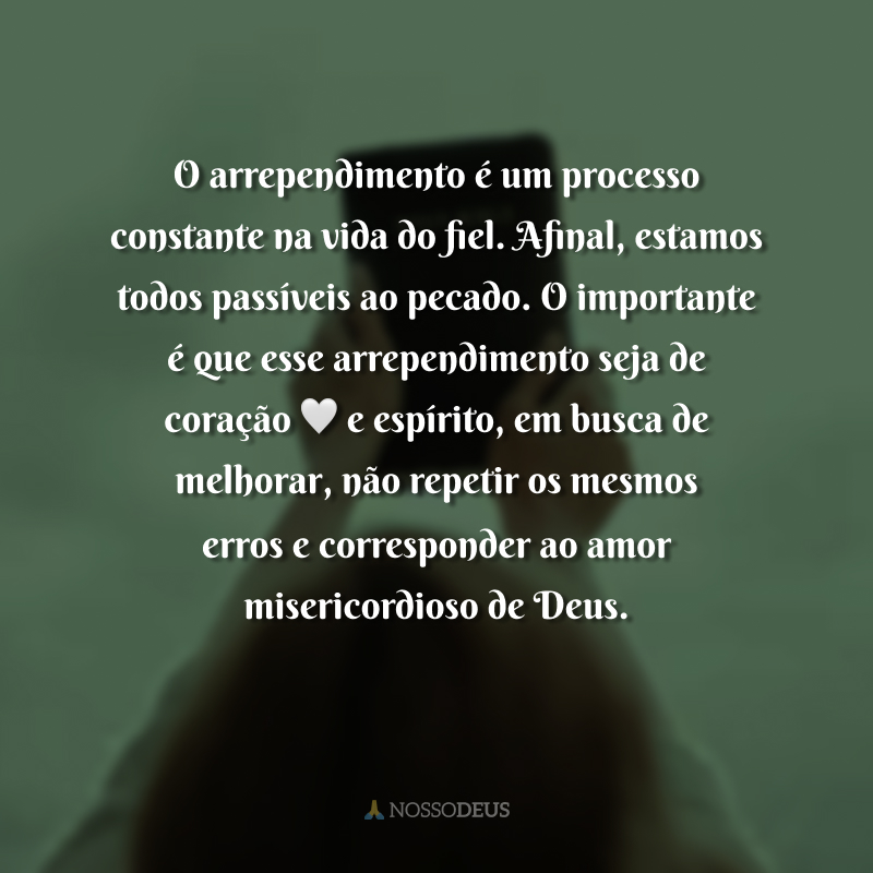 O arrependimento é um processo constante na vida do fiel. Afinal, estamos todos passíveis ao pecado. O importante é que esse arrependimento seja de coração 🤍 e espírito, em busca de melhorar, não repetir os mesmos erros e corresponder ao amor misericordioso de Deus.