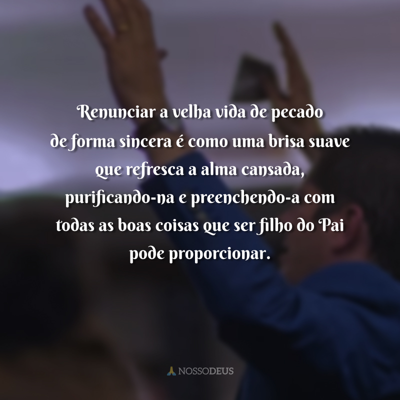 Renunciar a velha vida de pecado de forma sincera é como uma brisa suave que refresca a alma cansada, purificando-na e preenchendo-a com todas as boas coisas que ser filho do Pai pode proporcionar.