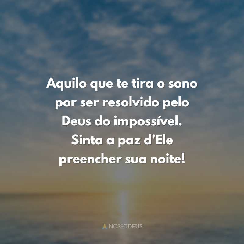 Aquilo que te tira o sono por ser resolvido pelo Deus do impossível. Sinta a paz d'Ele preencher sua noite!