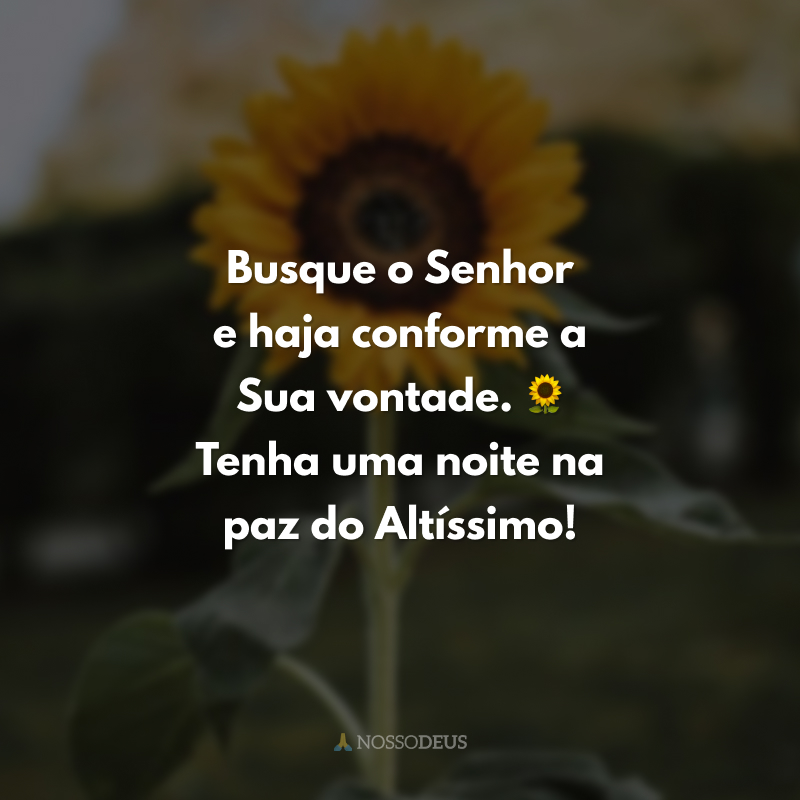 Busque o Senhor e haja conforme a Sua vontade. 🌻 Tenha uma noite na paz do Altíssimo!