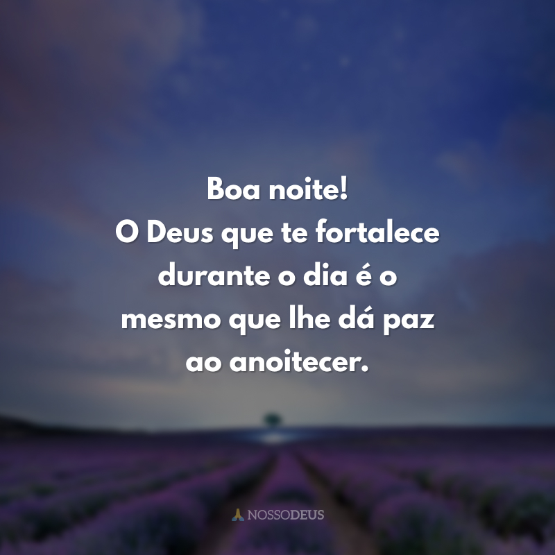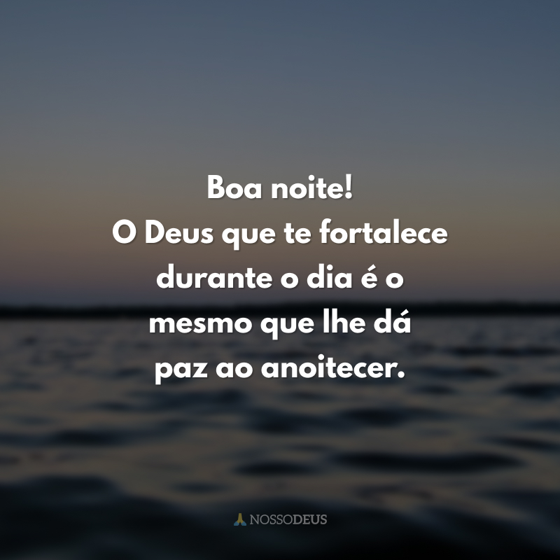 Boa noite! O Deus que te fortalece durante o dia é o mesmo que lhe dá paz ao anoitecer.