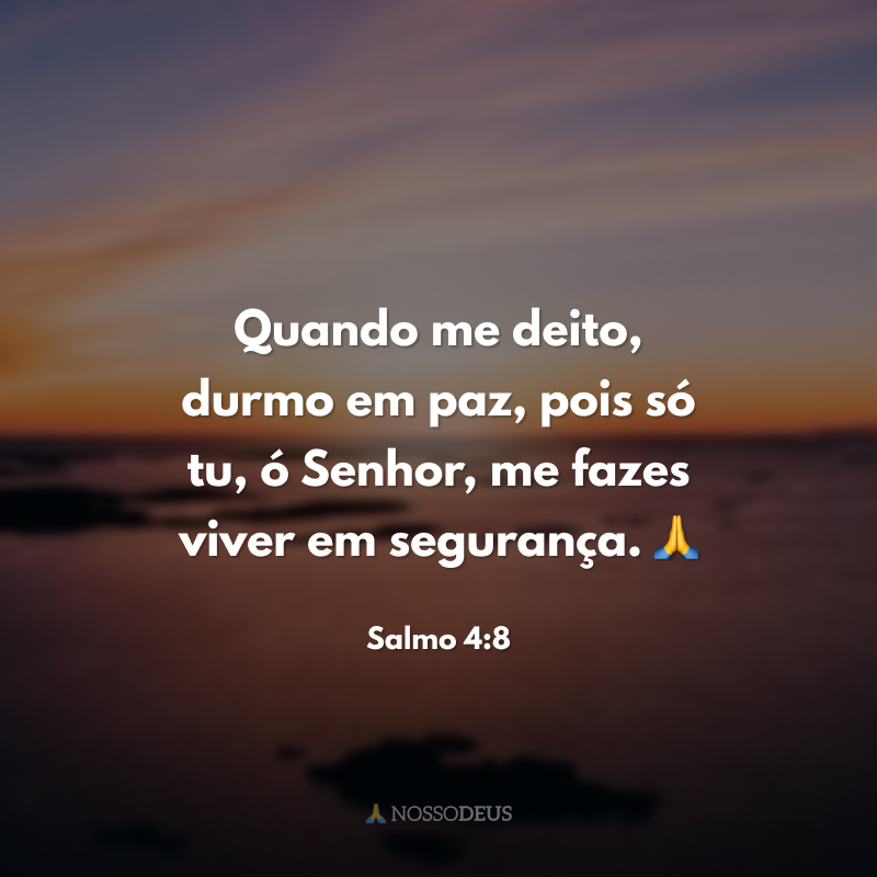 Quando me deito, durmo em paz, pois só tu, ó Senhor, me fazes viver em segurança. 🙏