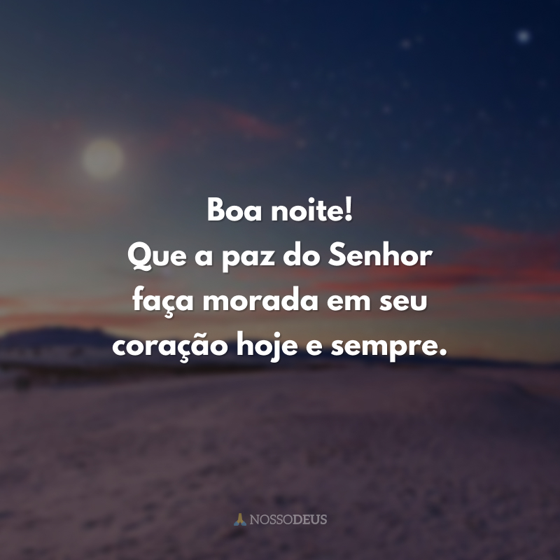 Boa noite! Que a paz do Senhor faça morada em seu coração hoje e sempre.