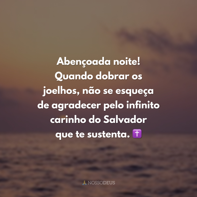 Abençoada noite! Quando dobrar os joelhos, não se esqueça de agradecer pelo infinito carinho do Salvador que te sustenta. ✝️