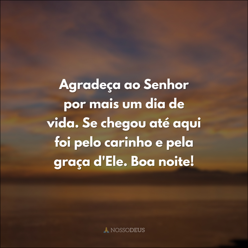 Agradeça ao Senhor por mais um dia de vida. Se chegou até aqui foi pelo carinho e pela graça d'Ele. Boa noite!